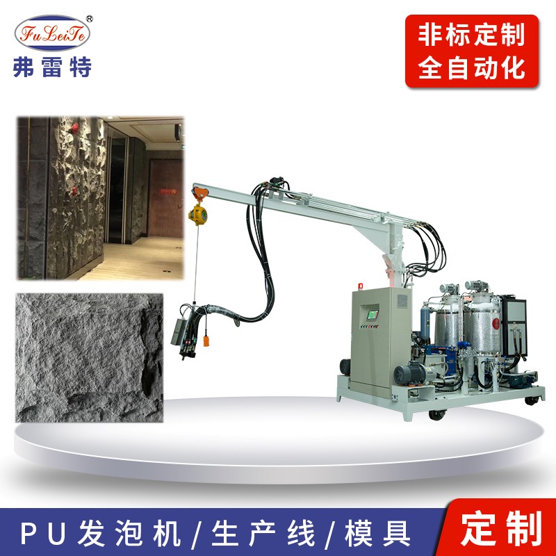 聚氨酯高壓發(fā)泡機(jī)將聚氨酯組合料中的黑料(異氰酸酯,又叫粗MDI)和白料(組合聚醚)按照一定比例的充分混合并輸出,進(jìn)入到模具中,輸出后的兩種原料發(fā)生化學(xué)反應(yīng),開始膨脹發(fā)泡,并最終成為預(yù)定的形狀,同時(shí)使用模具內(nèi)部的顏色。所有模具的形狀均基于真實(shí)的石材,以實(shí)現(xiàn)更逼真的拼接效果。
