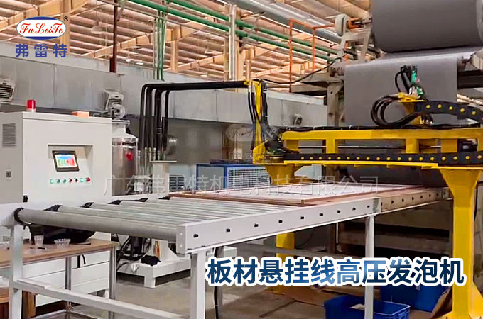 弗雷特機(jī)電為廈門的家具廠客戶定制了一臺我們新研發(fā)的高效懸掛線板材聚氨酯高壓發(fā)泡機(jī)設(shè)備,該設(shè)備主要應(yīng)用于仿木家具類板材、硬泡類仿木床板、仿木地板、保溫板材、仿石板材等。