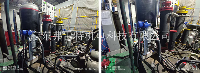 經(jīng)過一番研究,最終改裝位置確定下來,一個負(fù)責(zé)燒焊和舊過濾器的拆除,本人負(fù)責(zé)配電箱的控制,經(jīng)過2小時的的奮戰(zhàn)總算是把舊的過濾器拆除了,實屬不易!空間狹窄,衣服濕透了??偹惆讶詣拥倪^濾器裝上,最難的那部分完成了??蛻糁唤o了半天停工的時間,所以要在這半天時間里解決問題。雖然到了飯點,但我倆想搞完再去吃飯,餓一會兒不要緊,這就是默契,我們弗雷特售后維修的服務(wù)精神——急客戶之所急,憂客戶之所憂!