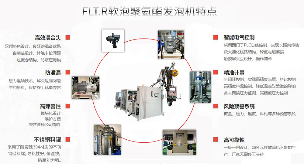 三組份、多組份聚氨酯高壓發(fā)泡機是將多種不同配方的生產(chǎn)工藝通過設備的配置及程序設定融合到一臺機器去完成。例如:三組份聚氨酯高壓發(fā)泡機的設定條件是B+A1或A2,當工藝要求是B+A2時,系統(tǒng)將自動轉換成設定的要求B+A2進行灌注。多組份的設定條件是B1+A1---B2+A2---B3+A3最多6組份3種配方。