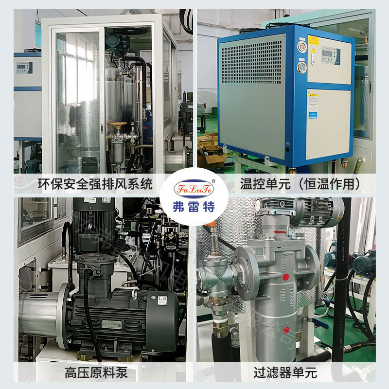 2、雙恒溫控制:采用雙冷熱一體機,配合冷熱交換器,確保原料溫度恒定,誤差<±2℃ ,提高制品發(fā)泡質(zhì)量。