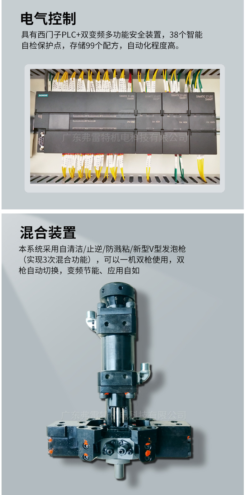 混合裝置:本系統(tǒng)采用自清潔/止逆/防濺粘/新型V型(實(shí)現(xiàn)3次混合功能)發(fā)泡槍,結(jié)構(gòu)美觀、操作方便。