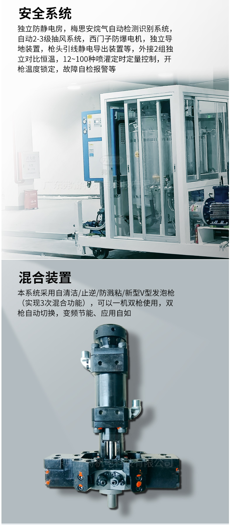 3、本系統(tǒng)采用自清潔、止逆、防濺粘、新型V型發(fā)泡槍,實現(xiàn)3次混合功能,結構美觀、操作方便。