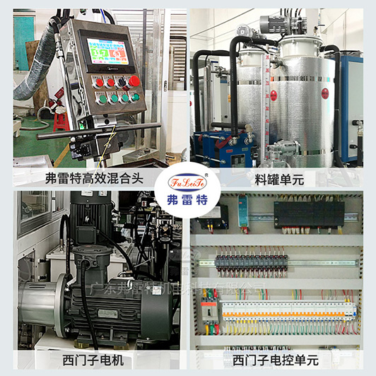 4、混合裝置: 采用自清潔/止逆/防濺粘/新型V型(實(shí)現(xiàn)3次混合功能)發(fā)泡槍,結(jié)構(gòu)美觀,操作方便。配合西門子聚氣醋專用泵,注射準(zhǔn)確,混合效果好。