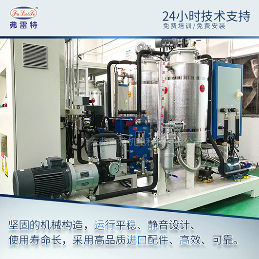 2、雙恒溫控制:采用雙冷熱一體機(jī),配合冷熱交換器,確保原料溫度恒定,誤差< +2°C ,提高制品發(fā)泡質(zhì)量