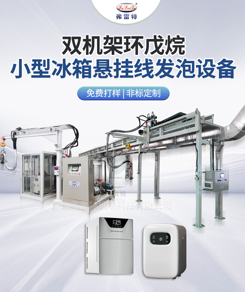 懸掛生產(chǎn)線比傳統(tǒng)擺臂式更實用:打料范圍廣、可以選擇不同大小模具操作、定位工位可操控,可以滿足冰箱、消毒柜、保溫箱等大型發(fā)泡產(chǎn)品進行批量生產(chǎn)。