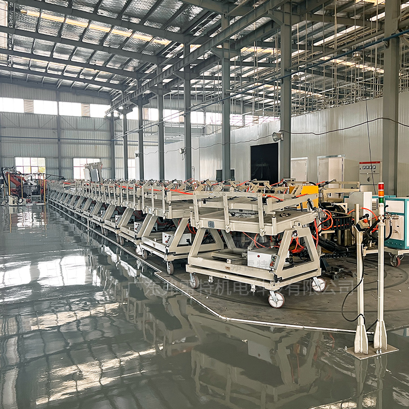 環(huán)形生產(chǎn)線主要適合慢回彈、高回彈海綿制品的發(fā)泡生產(chǎn),是和精密發(fā)泡機(jī)配套使用的,能提高生產(chǎn)效率,減少勞動(dòng)強(qiáng)度,提高產(chǎn)品質(zhì)量。環(huán)形生產(chǎn)線、軟泡發(fā)泡機(jī)是生產(chǎn)慢回彈,高回彈發(fā)泡制品必不可少的設(shè)備。流水線上配套有模具溫度控制系統(tǒng),電源和氣源系統(tǒng)配置等,流水線傳動(dòng)采用鏈條傳動(dòng)裝置,這樣大大減少轉(zhuǎn)動(dòng)電機(jī)的功率,達(dá)到節(jié)能省電的效果,旋轉(zhuǎn)速度無極可調(diào),性能穩(wěn)定,自動(dòng)化程度高,擁有極高的性價(jià)比。