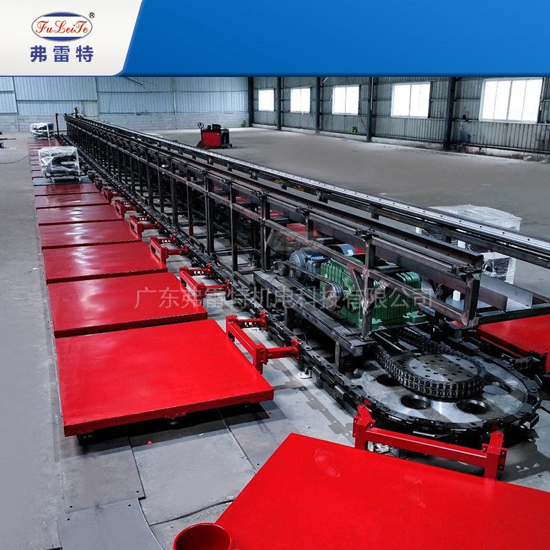 這是一條長33米帶有40個工位的車載冰箱大型環(huán)形發(fā)泡生產(chǎn)線。這條生產(chǎn)線的優(yōu)點是占地面積小,每個工位可負(fù)載1.5-1.8噸的重量。常應(yīng)用于車載冰箱、保溫箱、熱水器、汽車內(nèi)飾等領(lǐng)域。做到高產(chǎn)能、負(fù)載量高。廣東弗雷特是一家國家級高新技術(shù)企業(yè),科技中小型企業(yè),創(chuàng)新型企業(yè)和專精特新企業(yè)。