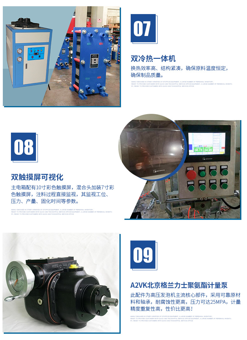 混合裝置:本系統(tǒng)采用自清潔/止逆/防濺粘/新型V型(實(shí)現(xiàn)3次混合功能)發(fā)泡槍,結(jié)構(gòu)美觀、操作方便。配合西門子聚氨酯專用泵,注射準(zhǔn),混合效果很好。