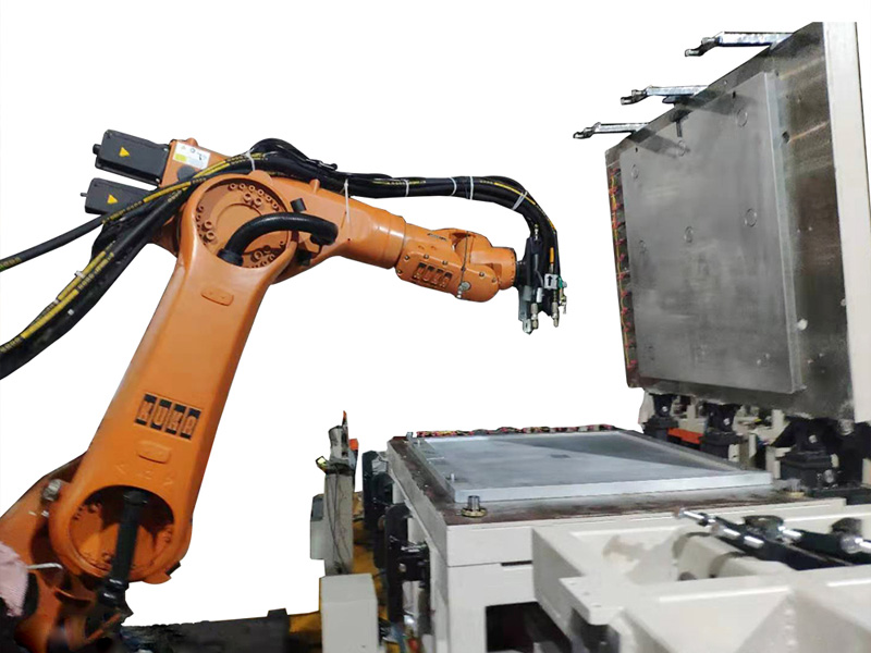 4. 庫卡機器人:德國庫卡機器人的應(yīng)用保障了每次澆筑的路線一致,從而是材料的密度均勻性有很提高,機器人壽命長,運行穩(wěn)定。工序銜接合理,息率高速度快是本生產(chǎn)線的最大特點。